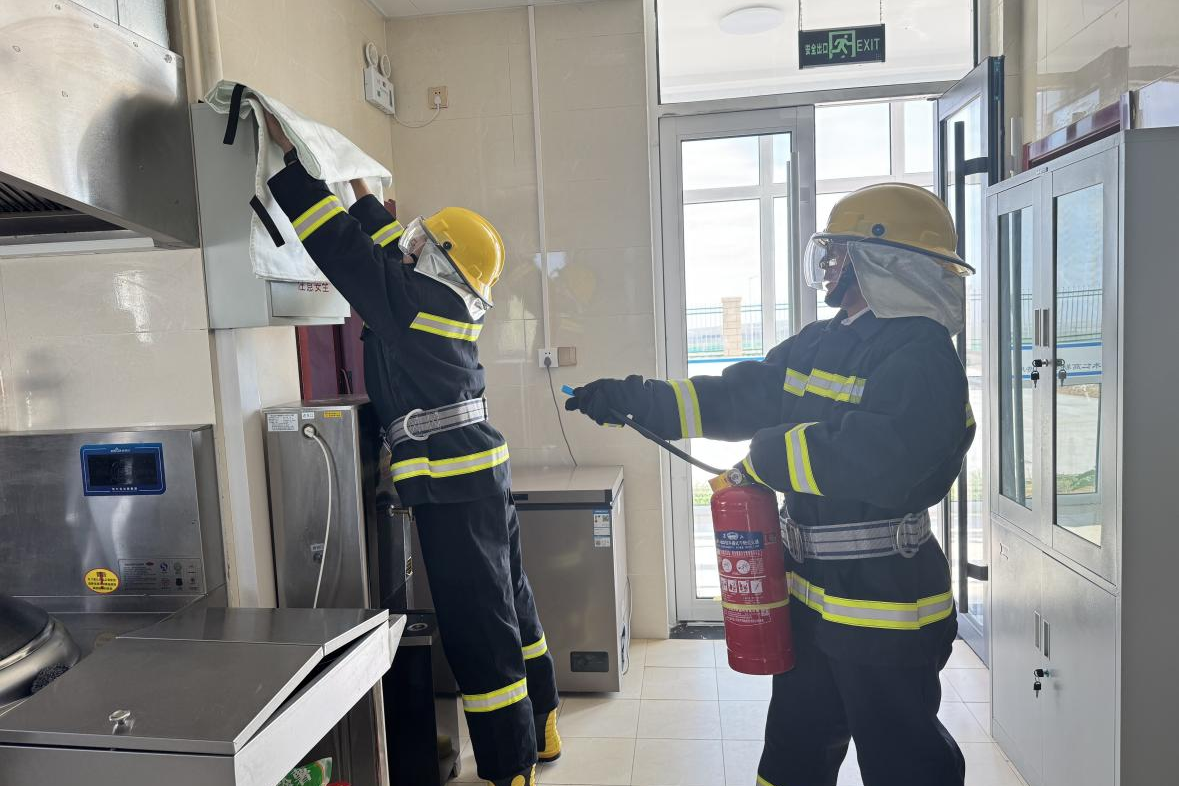 在此次演練中,木仁高勒收費站以演練模擬廚房配電箱線短路引發火情為背景,共設置火災初期撲救、人員疏散逃離兩個階段。值班所長接到廚房火災信息后,立即啟動火災現場處置方案通過對講機告知應急小組成員,相關人員第一時間切斷電源,并到微型消防站穿戴裝備前往火源點嘗試初期滅火,后因火勢過大,需對人員進行疏散,所站全員3分鐘內完成疏散,在較短時間內成功處置。