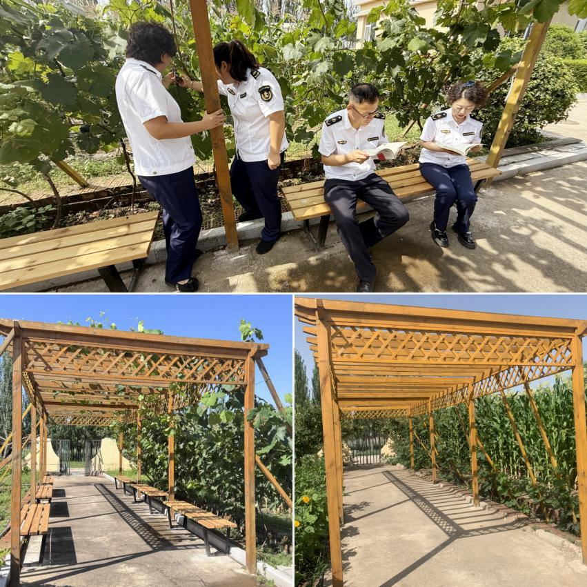 針對職工休息時缺乏舒適休閑場所的實際,白塔收費所精準施策,在院內葡萄乘涼架下加裝休息凳。翠綠藤蔓纏繞交織,形成天然遮陽屏障,為休息凳遮擋陽光;微風拂過,果香陣陣,讓此處成為兼具自然美感與實用價值的休憩角落。閑暇時分,職工可放松休憩、交流談心,工作疲憊感隨之消散,休息質量得到顯著提升。