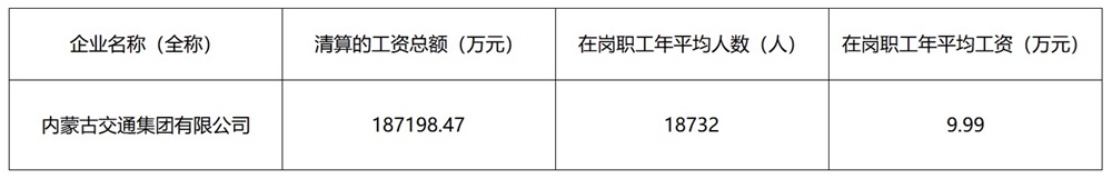 2023年度內蒙古交通集團有限公司工資總額信息披露