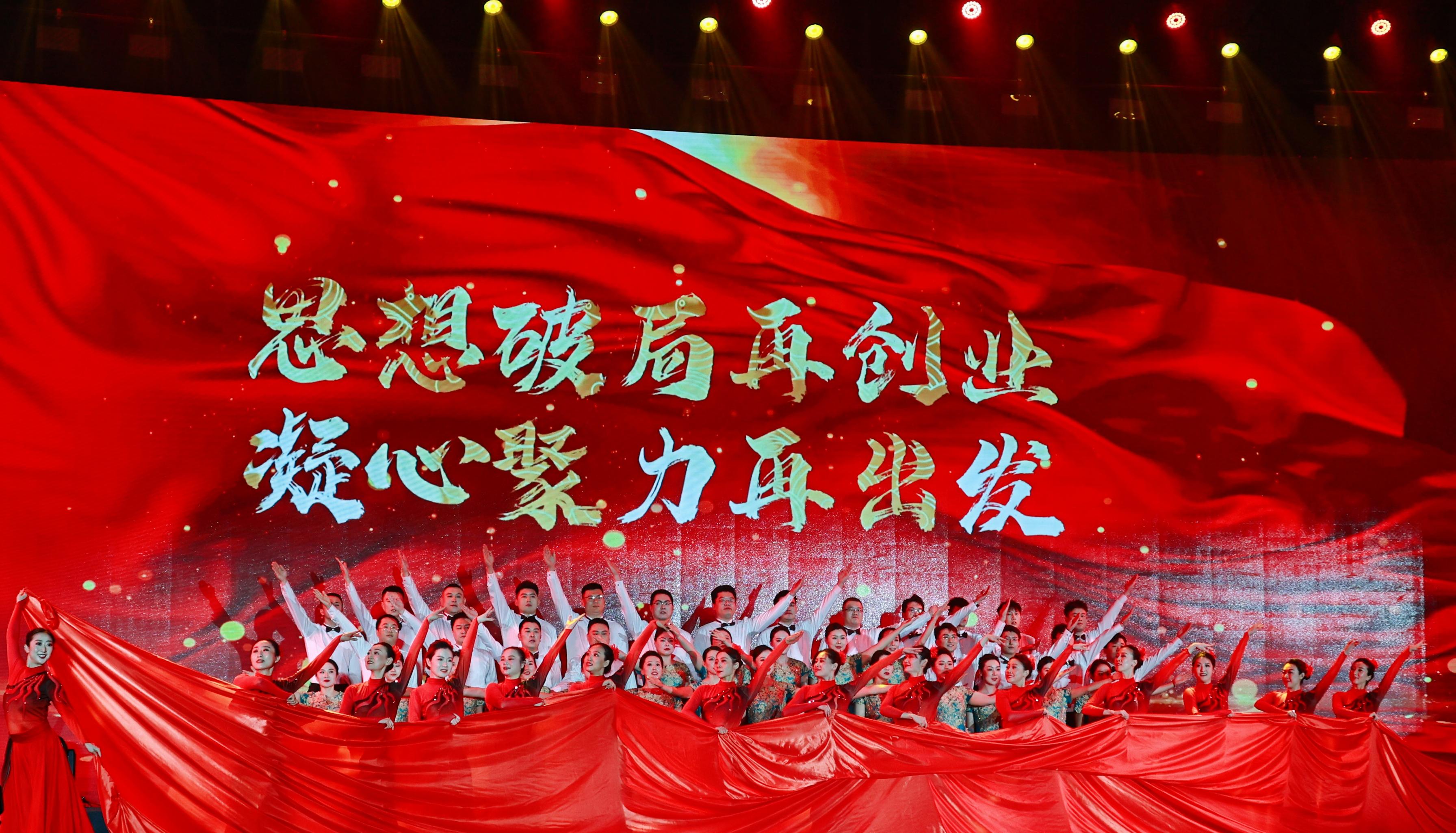 隨(sui)后,文(wen)藝(yi)匯演(yan)在(zai)(zai)(zai)歌舞(wu)《高歌行進(jin)(jin)》中(zhong)(zhong)(zhong)正(zheng)式拉開帷幕。“不(bu)忘(wang)來(lai)時路(lu)”“奮進(jin)(jin)正(zheng)當時”與“高歌向未來(lai)”三(san)個篇章輪番(fan)上演(yan)、精彩紛呈(cheng),生(sheng)(sheng)動(dong)展(zhan)(zhan)現集(ji)(ji)(ji)團(tuan)(tuan)改(gai)革(ge)突圍、勇挑重(zhong)擔(dan)(dan)的(de)(de)(de)(de)(de)奮進(jin)(jin)姿態,全面吹響(xiang)集(ji)(ji)(ji)團(tuan)(tuan)破局出(chu)發(fa)、再創輝煌的(de)(de)(de)(de)(de)奮進(jin)(jin)號角。情(qing)景劇《堅(jian)定信念·薪火相傳》通過生(sheng)(sheng)動(dong)的(de)(de)(de)(de)(de)演(yan)繹(yi),精彩呈(cheng)現集(ji)(ji)(ji)團(tuan)(tuan)70余年(nian)(nian)的(de)(de)(de)(de)(de)發(fa)展(zhan)(zhan)歷(li)程,彰顯了一(yi)代(dai)(dai)代(dai)(dai)內蒙(meng)古交通人(ren)逢山(shan)開路(lu)、遇(yu)水架橋(qiao),埋(mai)頭苦(ku)干(gan)、擔(dan)(dan)當奉獻(xian)的(de)(de)(de)(de)(de)精神面貌(mao);詩(shi)朗(lang)誦(song)《新(xin)征程 新(xin)起點》以鏗(keng)鏘有力的(de)(de)(de)(de)(de)語言(yan),回顧集(ji)(ji)(ji)團(tuan)(tuan)2024年(nian)(nian)承壓奮進(jin)(jin)的(de)(de)(de)(de)(de)艱(jian)辛(xin)歷(li)程,表(biao)達對未來(lai)發(fa)展(zhan)(zhan)的(de)(de)(de)(de)(de)堅(jian)定信心(xin)(xin)與美好憧憬;舞(wu)蹈(dao)《守護(hu)(hu)》則以矯健的(de)(de)(de)(de)(de)舞(wu)步,展(zhan)(zhan)現了公路(lu)養護(hu)(hu)工人(ren)在(zai)(zai)(zai)祖國北疆(jiang)迎(ying)著(zhu)酷暑、冒著(zhu)嚴(yan)寒,守護(hu)(hu)1.1萬(wan)余公里公路(lu)的(de)(de)(de)(de)(de)堅(jian)守與擔(dan)(dan)當;獨唱《駿馬奔馳(chi)保邊疆(jiang)》用(yong)(yong)激蕩(dang)人(ren)心(xin)(xin)的(de)(de)(de)(de)(de)旋(xuan)律,展(zhan)(zhan)現出(chu)集(ji)(ji)(ji)團(tuan)(tuan)大力弘揚“蒙(meng)古馬精神”,為自(zi)治(zhi)區(qu)經濟社會發(fa)展(zhan)(zhan)貢獻(xian)交通力量的(de)(de)(de)(de)(de)決(jue)心(xin)(xin)與魄力;現代(dai)(dai)激光群舞(wu)《新(xin)時代(dai)(dai)狂(kuang)想(xiang)曲》用(yong)(yong)聲光電多媒體的(de)(de)(de)(de)(de)震撼效(xiao)果(guo),生(sheng)(sheng)動(dong)呈(cheng)現集(ji)(ji)(ji)團(tuan)(tuan)聚焦主(zhu)(zhu)責主(zhu)(zhu)業(ye)超(chao)前(qian)布局新(xin)興產業(ye)、未來(lai)產業(ye)的(de)(de)(de)(de)(de)宏偉藍圖(tu)和創新(xin)實踐,將(jiang)整場演(yan)出(chu)推向高潮。演(yan)出(chu)在(zai)(zai)(zai)一(yi)首《光榮的(de)(de)(de)(de)(de)旗》中(zhong)(zhong)(zhong)落下(xia)帷幕,用(yong)(yong)氣勢(shi)磅礴的(de)(de)(de)(de)(de)合唱表(biao)達集(ji)(ji)(ji)團(tuan)(tuan)上下(xia)以習近平(ping)新(xin)時代(dai)(dai)中(zhong)(zhong)(zhong)國特色(se)社會主(zhu)(zhu)義思想(xiang)為指(zhi)導(dao)(dao),在(zai)(zai)(zai)自(zi)治(zhi)區(qu)黨委、政府堅(jian)強(qiang)領導(dao)(dao)下(xia),為全面建(jian)設社會主(zhu)(zhu)義現代(dai)(dai)化強(qiang)國、全面推進(jin)(jin)中(zhong)(zhong)(zhong)華民族偉大復興而團(tuan)(tuan)結奮斗(dou)的(de)(de)(de)(de)(de)共(gong)同心(xin)(xin)聲和堅(jian)定決(jue)心(xin)(xin)。