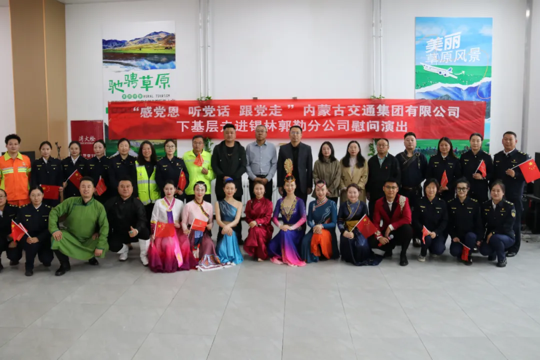 為豐富民族團結進步活動月文化活動的形式和內容,有形有感有效鑄牢中華民族共同體意識,9月5日,內蒙古交通集團烏蘭牧騎赴錫林郭勒分公司開展“感黨恩、聽黨話、跟黨走”下基層慰問演出。此次演出在錫林郭勒分公司桑根達來東服務區舉行,正藍旗總工會黨組書記、常務副主席任志強、正藍旗社會工作部副部長蘇日娜、錫林郭勒分公司黨委副書記、工會主席辛煒和屬地交通運輸服務行業代表、錫林郭勒分公司、蒙通養護錫林郭勒分公司廣大干部職工、屬地農牧民群眾、過往司乘人員共370余人觀看。