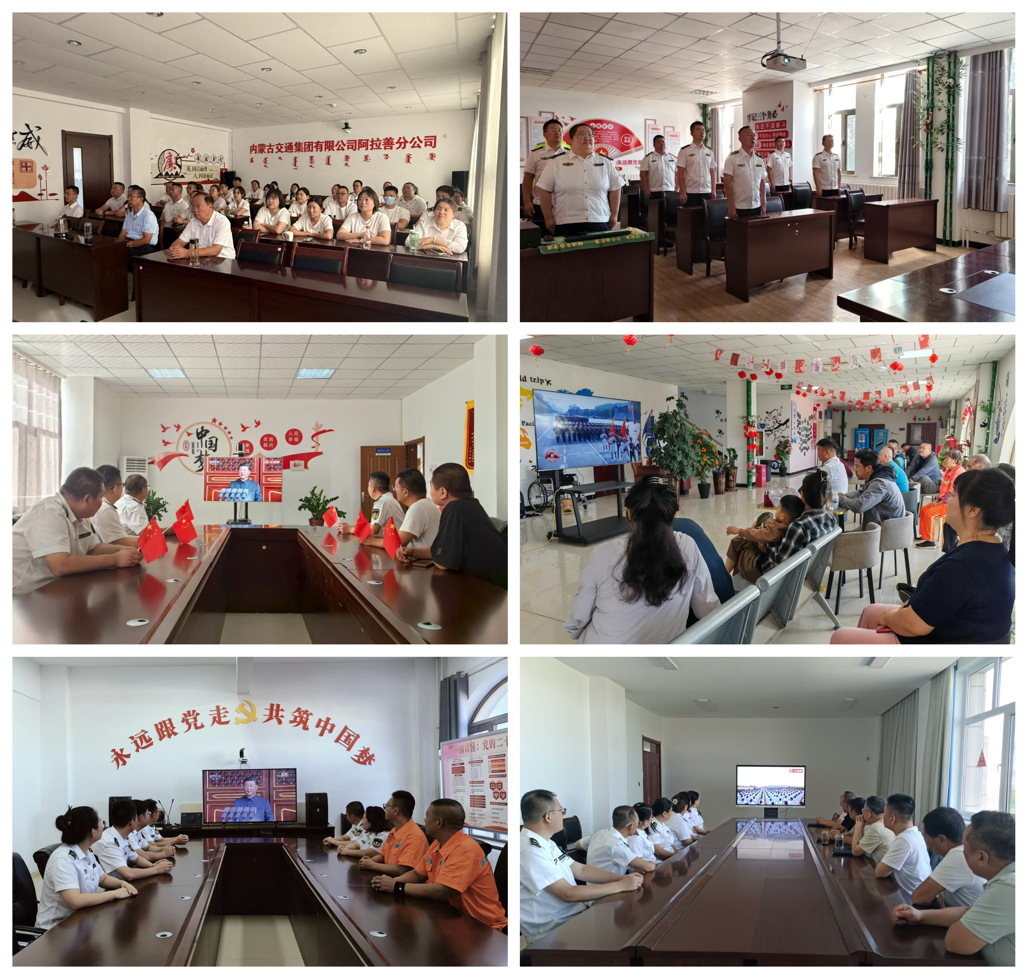 9月3日上午,阿拉善分公司積極組織干部職工通過電視/網絡多平臺觀看紀念中國人民抗日戰爭暨世界反法西斯戰爭勝利80周年大會直播,各黨支部結合“主題黨日”開展活動,收費所、監控中心、水電管理所同步收看,服務區利用場地優勢,提前調試設備設施,邀請過往游客共同觀看現場直播,在莊嚴神圣的氛圍中感悟歷史重量、汲取奮進力量。