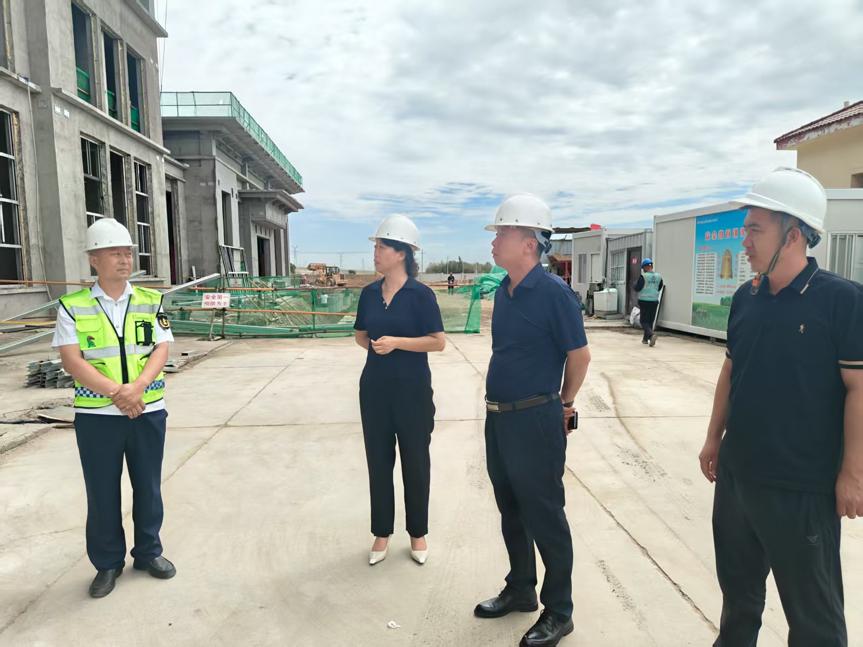賈曉蓉一行先后實地查看了綜合樓施工現場、材料堆場以及便利店和公共衛生間,詳細了解了工程施工進度和下階段施工計劃,服務區負責人和施工負責人現場匯報了相關工作。