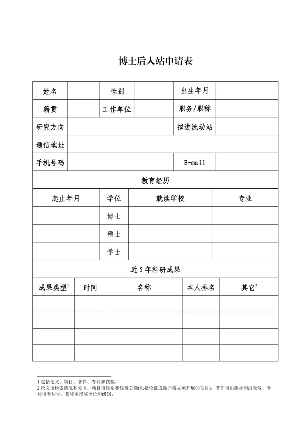 附件(jian):《博士后入站申(shen)請(qing)表》