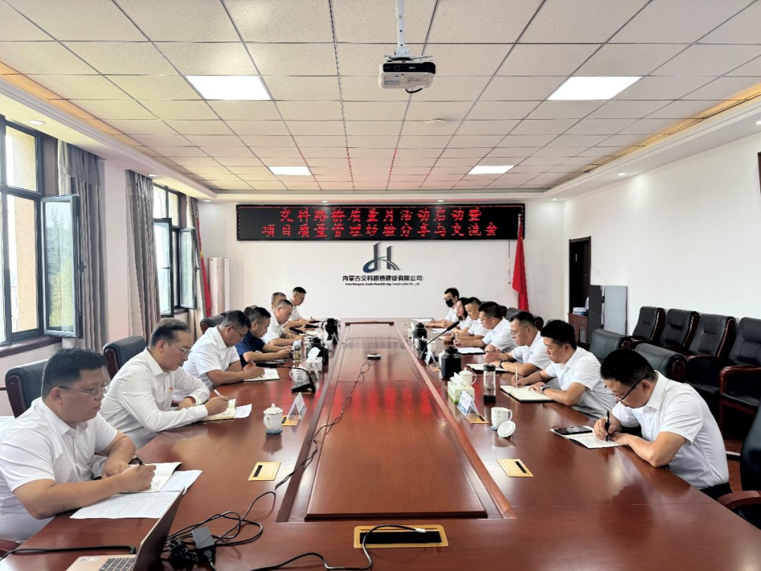 9月9日,內蒙古交科路橋建設有限公司召開“質量月”活動啟動會暨項目質量管理經驗分享與交流會,公司黨委委員、副總經理賈俊出席會議并講話。