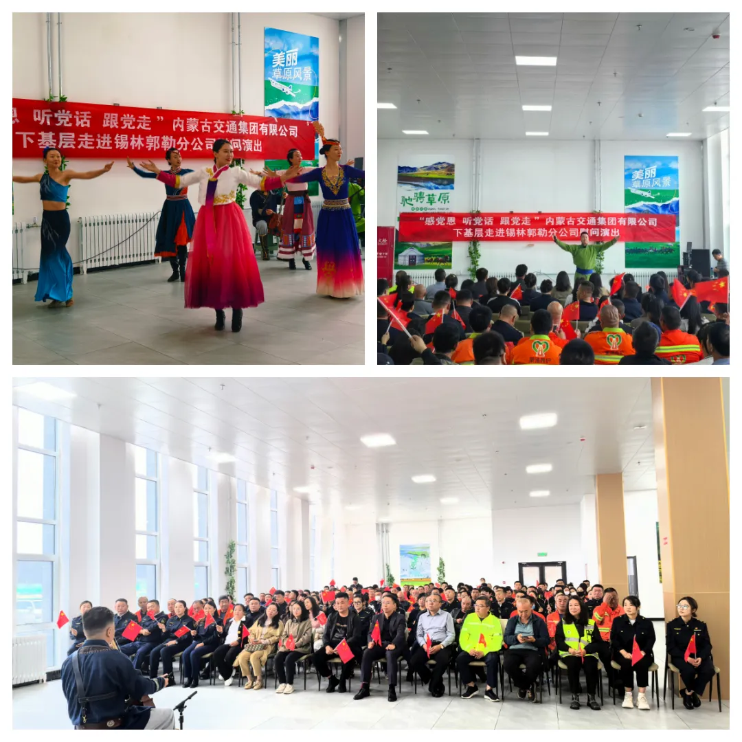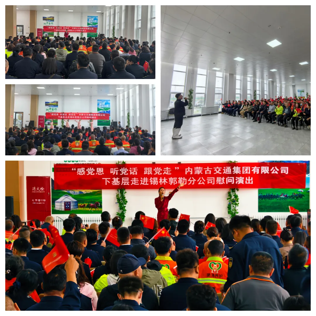 為豐富民族團結進步活動月文化活動的形式和內容,有形有感有效鑄牢中華民族共同體意識,9月5日,內蒙古交通集團烏蘭牧騎赴錫林郭勒分公司開展“感黨恩、聽黨話、跟黨走”下基層慰問演出。此次演出在錫林郭勒分公司桑根達來東服務區舉行,正藍旗總工會黨組書記、常務副主席任志強、正藍旗社會工作部副部長蘇日娜、錫林郭勒分公司黨委副書記、工會主席辛煒和屬地交通運輸服務行業代表、錫林郭勒分公司、蒙通養護錫林郭勒分公司廣大干部職工、屬地農牧民群眾、過往司乘人員共370余人觀看。