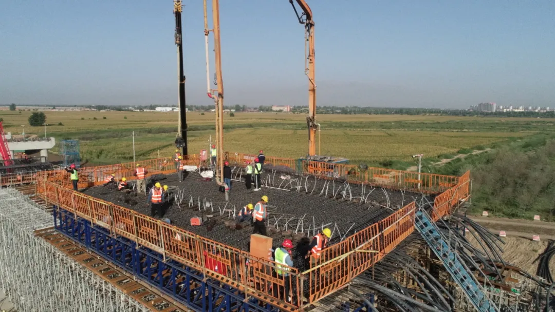 2025年9月9日,歷經近11小時連續奮戰,烏石項目巴音陶亥黃河特大橋跨堤橋首個連續梁0#塊成功澆筑,標志著跨堤橋上部結構施工全面啟動。